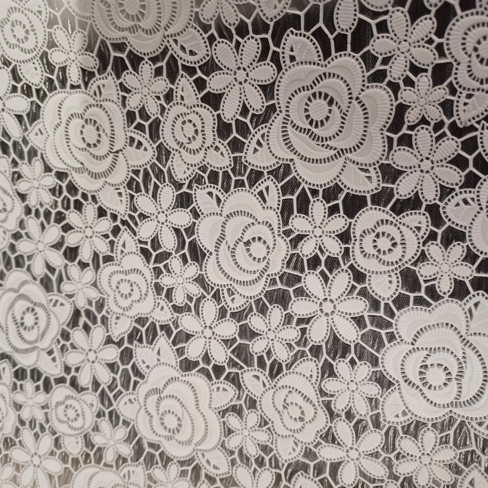 Vaxduk PVC spetsblommning vit transperant 140 cm
